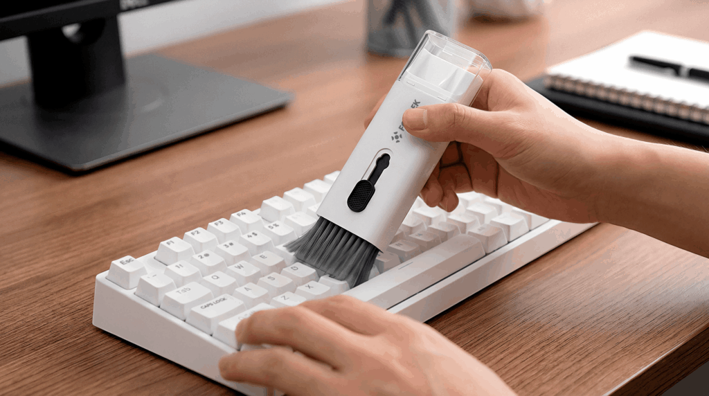 Dica extra: para manter seus periféricos sempre limpos e bem conservados, vale apostar no kit de limpeza EC7. Com 7 ferramentas diferentes, ele facilita a remoção de poeira em áreas difíceis e proporciona uma higienização completa de forma prática e rápida.